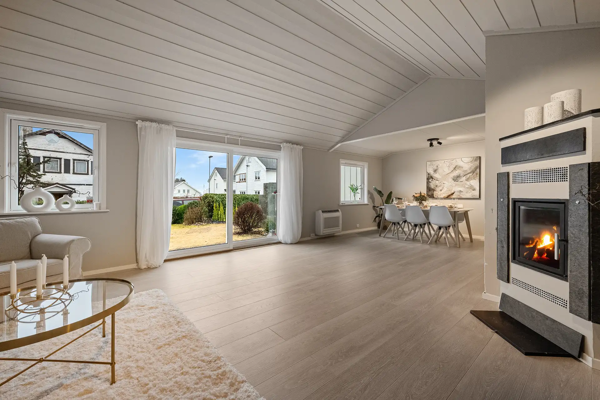 Innvendig er boligen oppgradert og modernisert i begge plan. Nytt bad med dokumentert utførelse ferdigstilt i desember 2025. Det er gjennomført endringer i planløsning i 1.etg. som ikke er søknadspliktig. To soverom i kjeller er godkjent med ferdigattest. For nærmere spesifiseringer, studer premisstekst og vurderinger av de enkelte bygningskomponentene utover i rapporten.