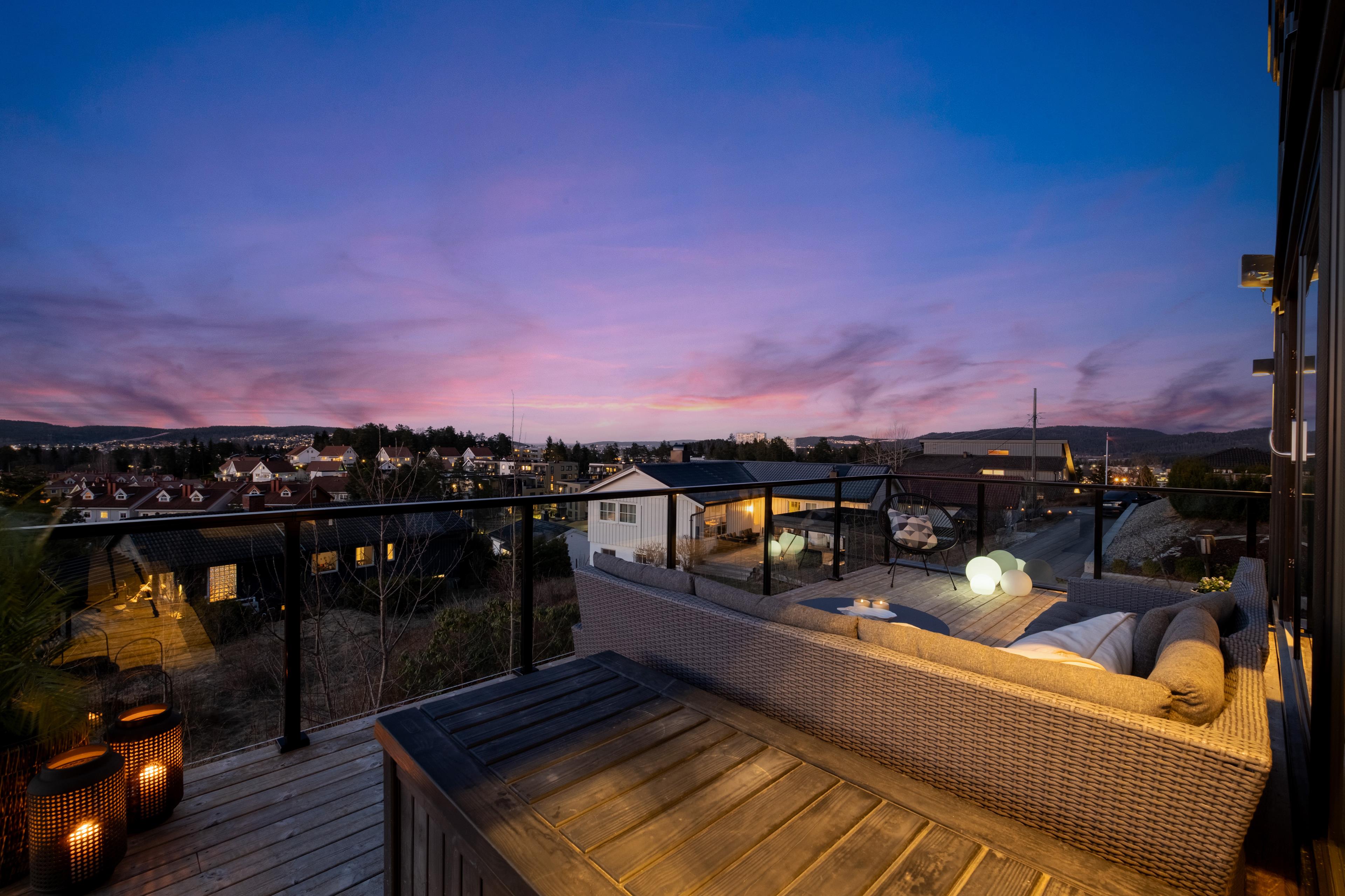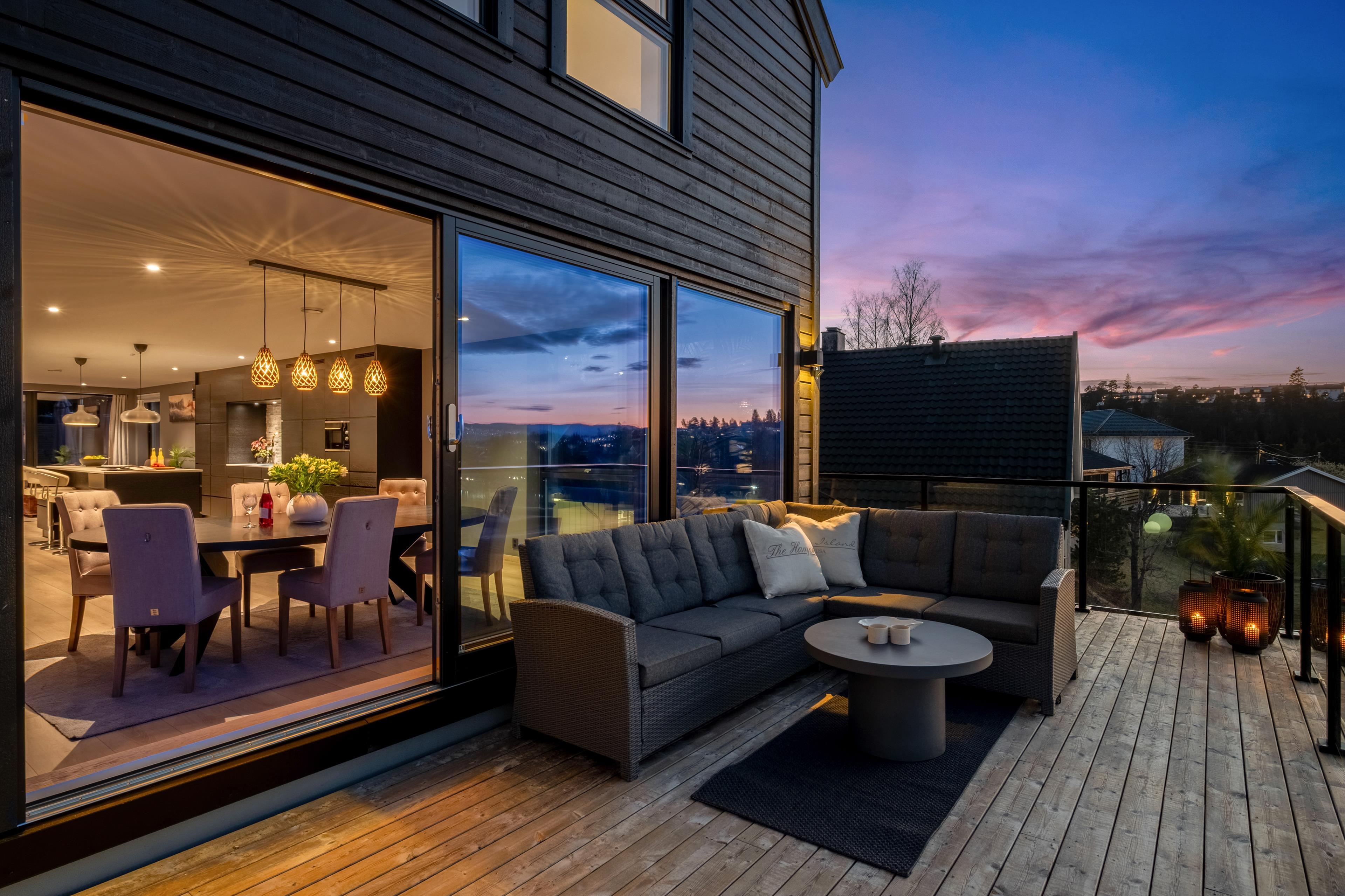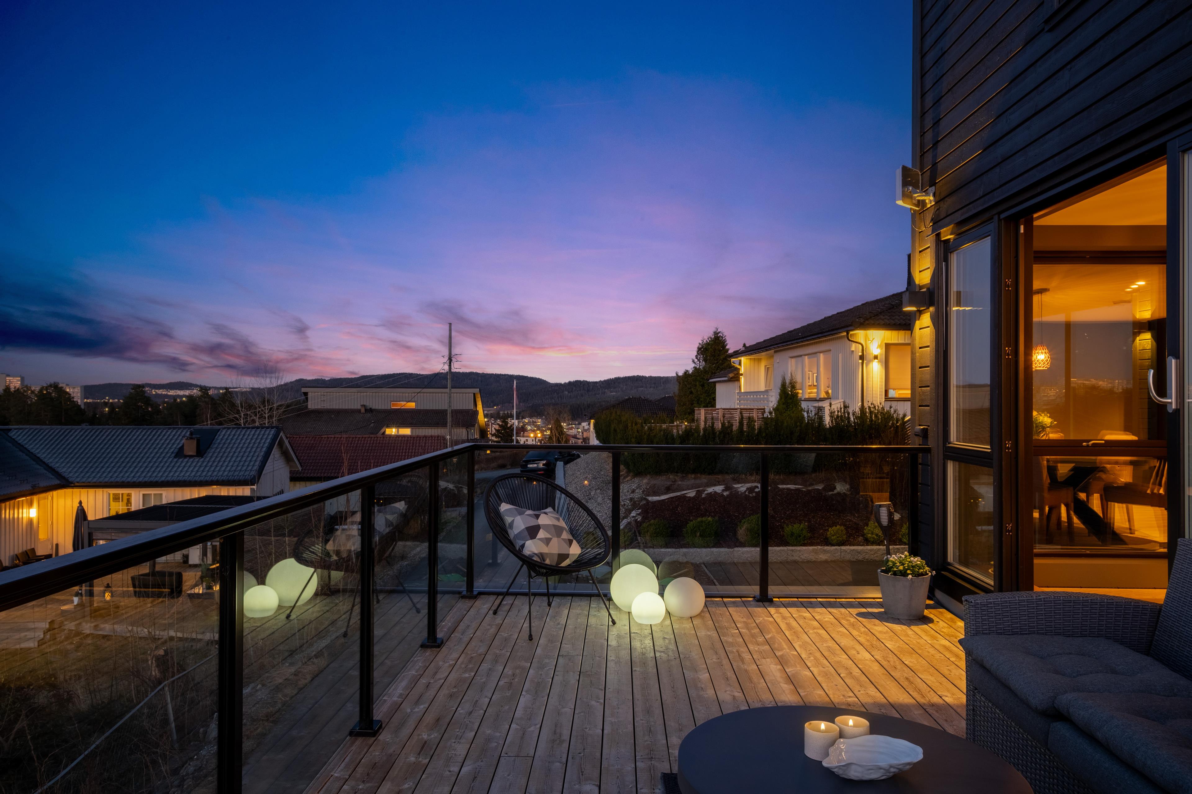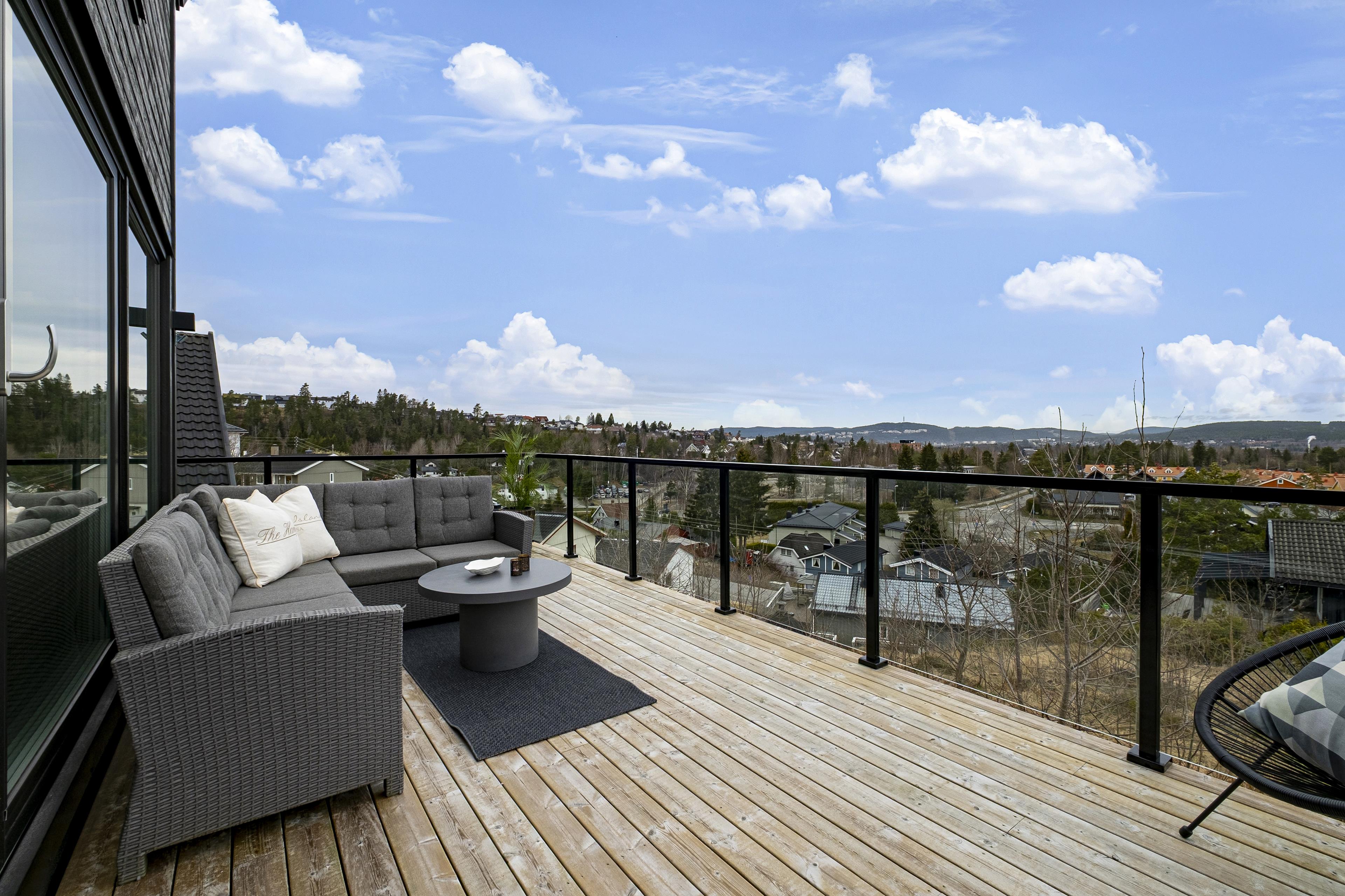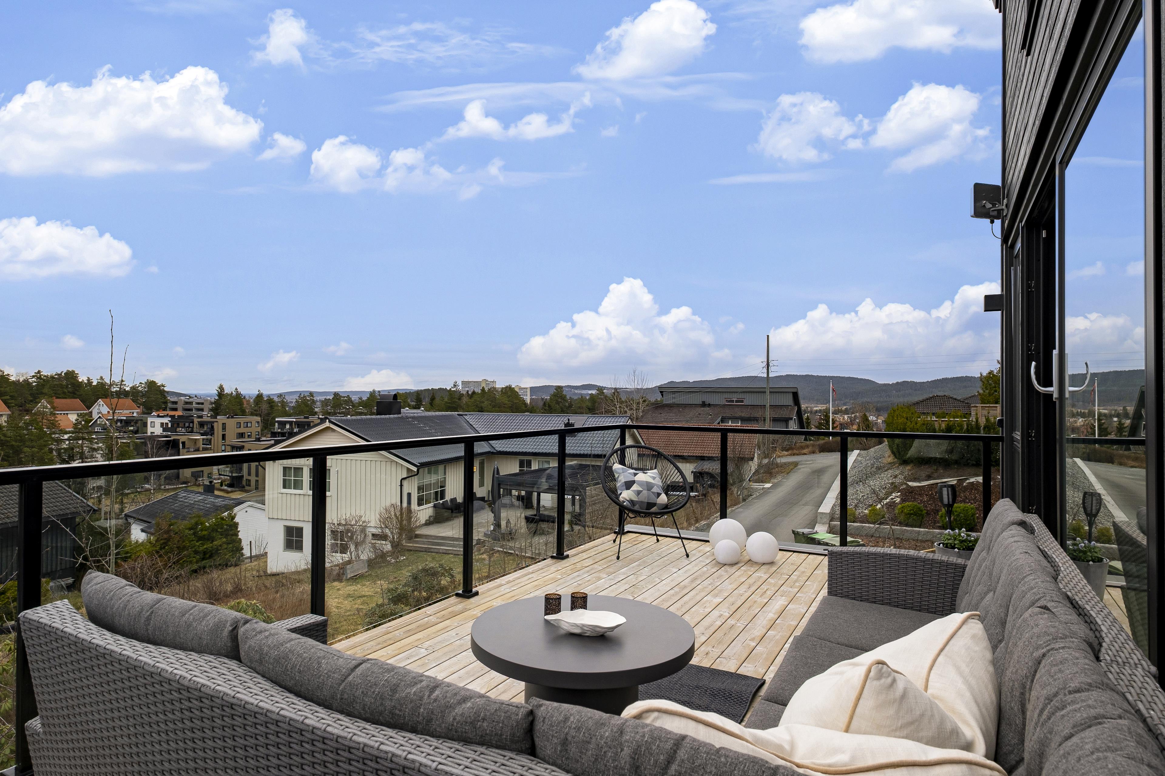 mark, og med rekkverk i trevirke. Den andre har adkomst fra stue og er bygget over garasje. Denne er i