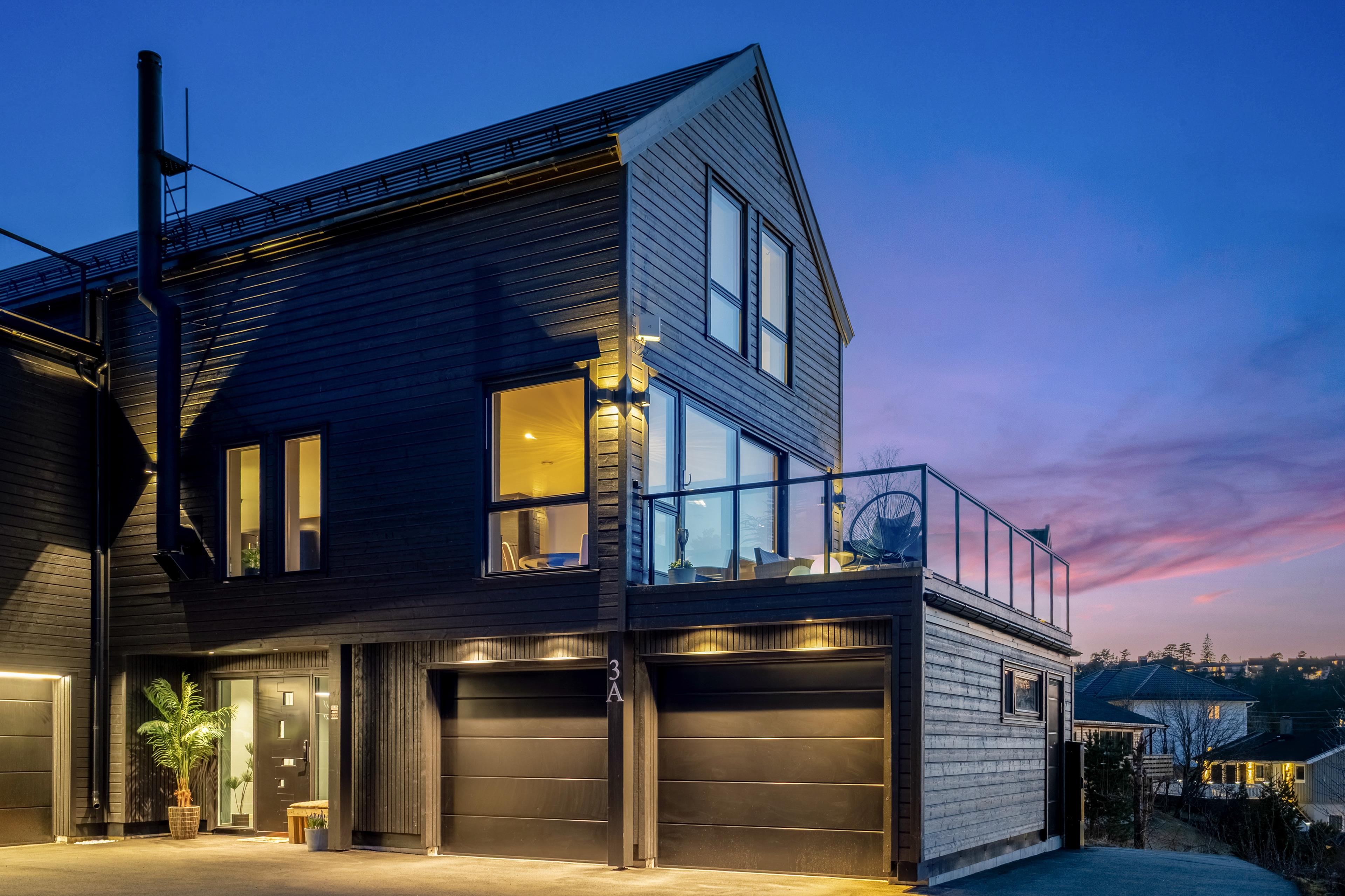ytterveggene som er mot terrenget i størst grad er innerst i boligen med flislagt bad og vaskerom. Bygget